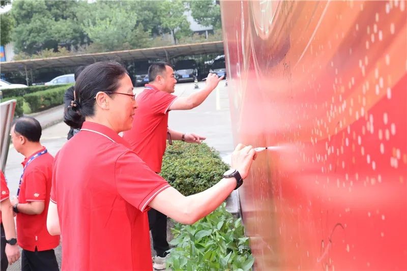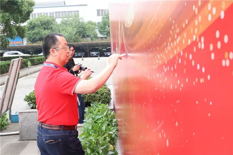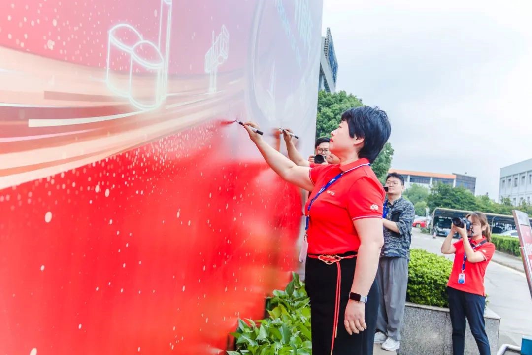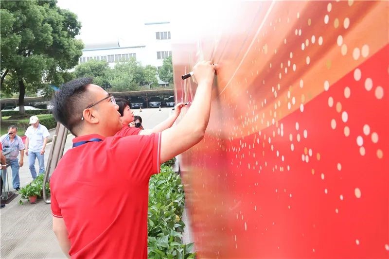 最后,南通中集兩板塊各公司管理部領(lǐng)導(dǎo)與員工在“中集日”主題背景板上簽名、合影留念,表達(dá)對中集集團(tuán)、對公司未來發(fā)展的期許和祝福。