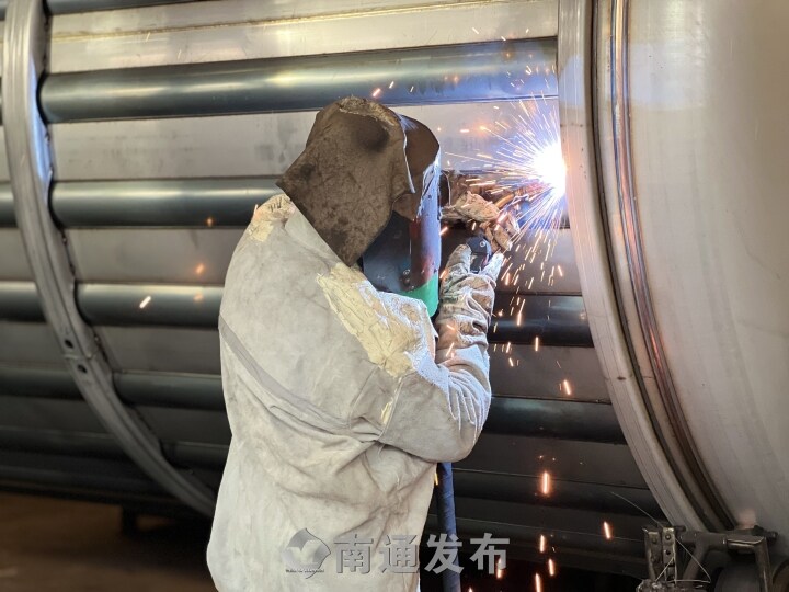 1日,記者走進中集安瑞環(huán)科技股份有限公司(以下簡稱“中集環(huán)科”)生產(chǎn)車間,切身感受一線職工在高溫酷暑季節(jié)的作業(yè)環(huán)境。公司訂單飽滿,生產(chǎn)線馬力全開,工作人員有條不紊地忙碌著。令人印象頗深的是,公司自動化生產(chǎn)線和裝備的投入使用,極大改善了員工的作業(yè)環(huán)境,減輕了人員勞動強度,這也是中集環(huán)科發(fā)展新質(zhì)生產(chǎn)力的生動實踐。早上6點,公司標(biāo)罐車間十字焊接工李忠付開始今天的工作,中午12點便可下班。今年開始,公司明文規(guī)定要錯開高溫時間段生產(chǎn),保障員工在高溫天氣下的安全與健康。“當(dāng)氣溫達到37攝氏度以上,我們下午都是不上班的。”2007年加入中集環(huán)科,李忠付已經(jīng)是一名老師傅,只見他麻利地穿好牛皮防護服、防護手套,戴上焊工防護面罩后,還會把提供涼氣的“空調(diào)衣”準(zhǔn)備好,一系列操作行云流水,他開始將加熱管和加強圈陸續(xù)焊接到罐體上。