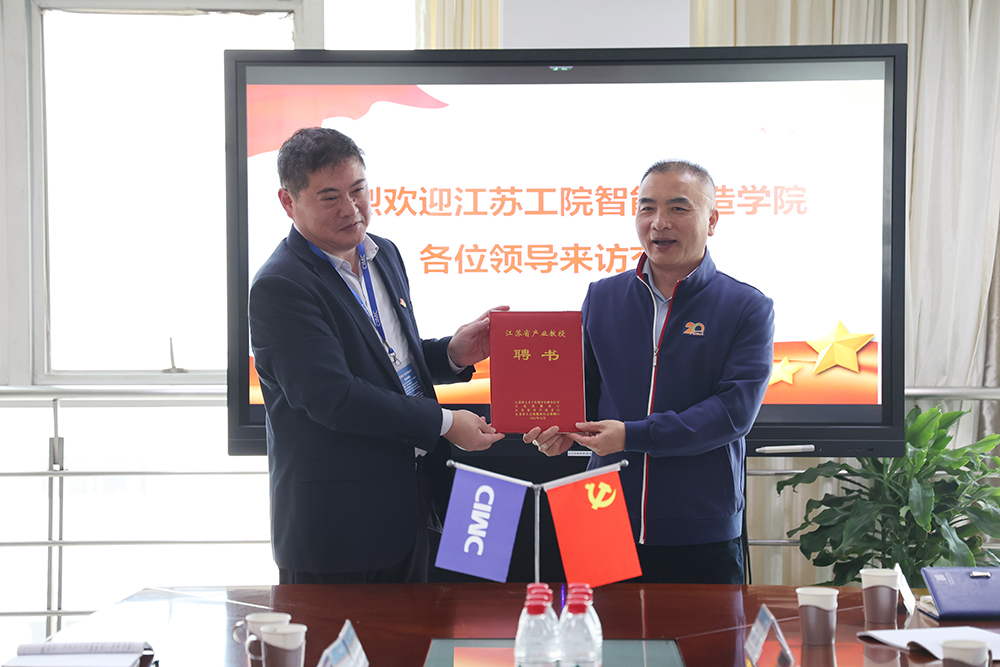 簽約儀式上,江蘇工程職業(yè)技術(shù)學院機電黨支部書記畢書博和中集安瑞環(huán)科技股份有限公司第二黨支部書記汪海平簽訂黨建共建協(xié)議書。公司陳曉春總被聘為“江蘇省產(chǎn)業(yè)教授”,江蘇工院海門校區(qū)實訓中心主任趙斌為其頒發(fā)聘書。