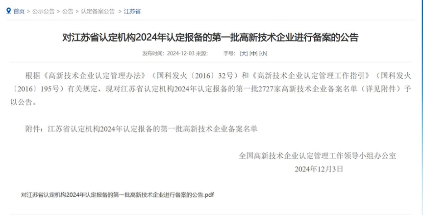 12月3日,全國高新技術(shù)企業(yè)認(rèn)定管理工作領(lǐng)導(dǎo)小組辦公室正式公告了江蘇省2024年認(rèn)定報(bào)備的第一批高新技術(shù)企業(yè)備案名單,中集安瑞環(huán)科技股份有限公司(以下簡稱“中集環(huán)科”)憑借其在技術(shù)創(chuàng)新、知識(shí)產(chǎn)權(quán)、產(chǎn)品研發(fā)及轉(zhuǎn)化等方面的卓越表現(xiàn),再次成功獲得國家高新技術(shù)企業(yè)資質(zhì)認(rèn)定,證書編號(hào)為GR202432000848。